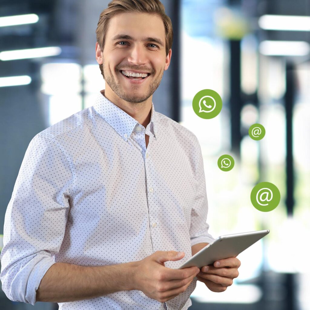 Newsletter und WhatsApp-News bringen Ihre Informationen direkt zu den Empfängern – auf häufig und gerne genutzten Kanälen. So begleiten Sie Ihre Kunden und Patienten optimal. Benötigen Sie Unterstützung bei der Umsetzung? Wir helfen Ihnen gerne, Ihre Inhalte zielgruppengerecht zu gestalten und zu versenden.